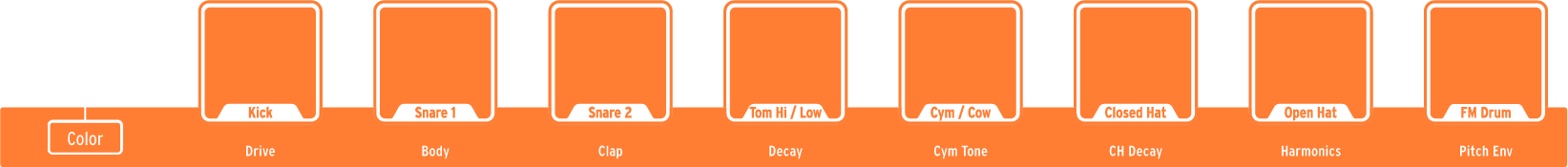 Presentamos “Color”, el modelador de sonido exclusivo del DrumBrute Impact que añade un toque extra de genialidad y le da a cada sonido otro parámetro expresivo con el que experimentar.