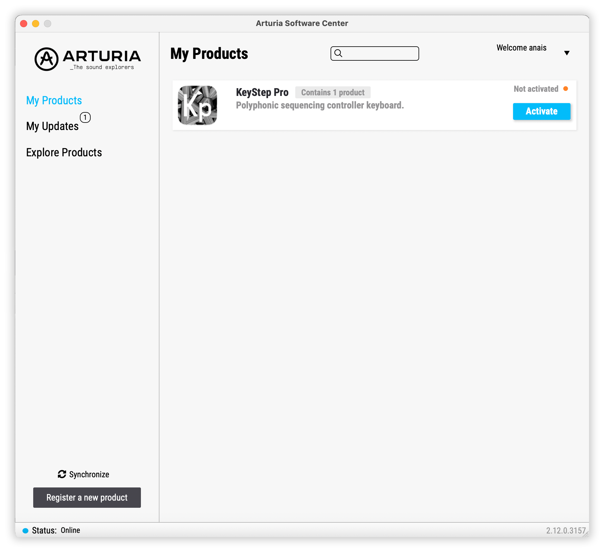 (Your KeyStep Pro must be registered in order to show up in the Arturia Software Center. To do so, close the Arturia Software Center, connect your KeyStep Pro to your computer & launch the Arturia Software Center again.)