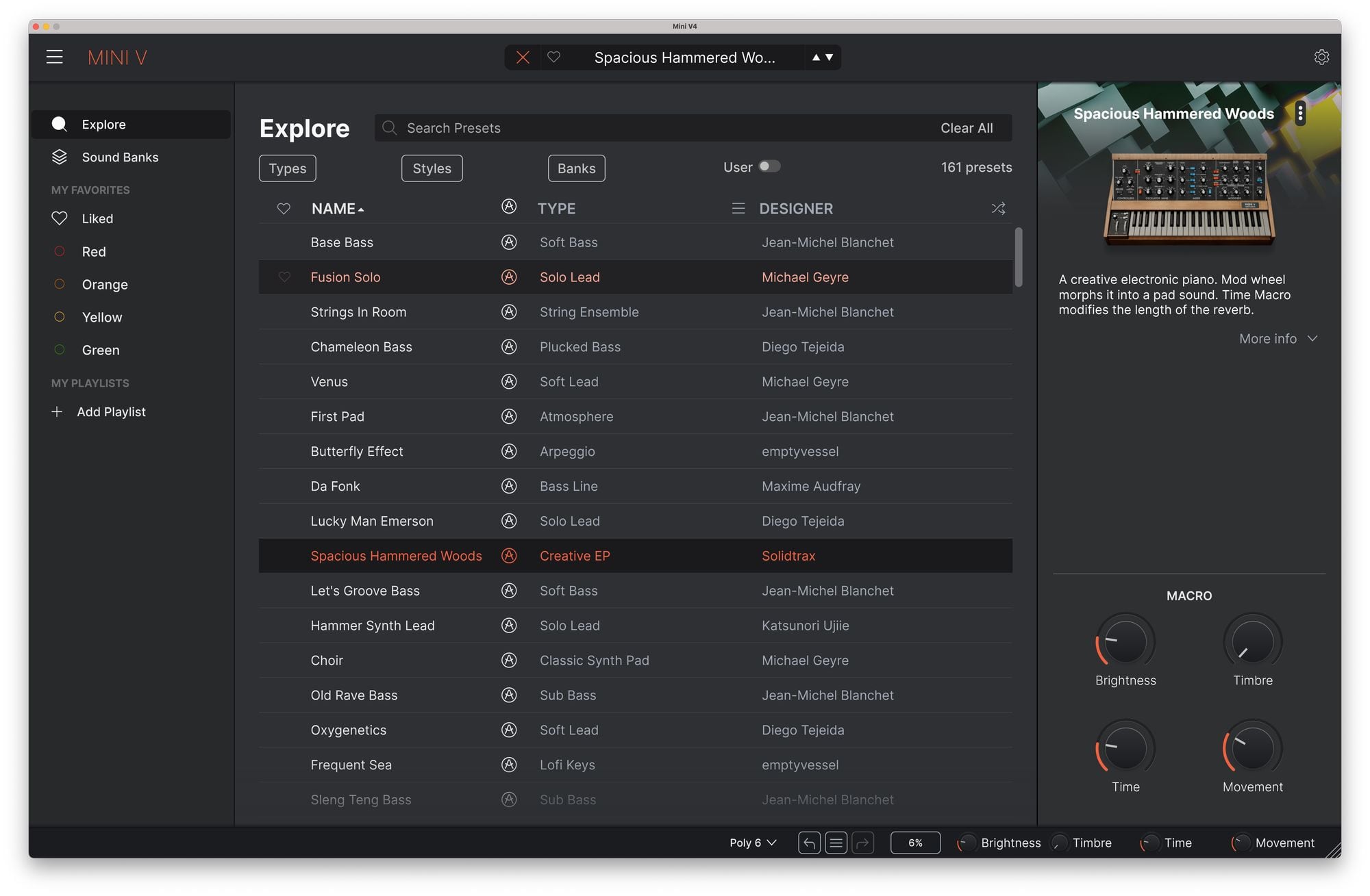 Mini V’s precise emulation and sonic accuracy is simply unparalleled. The 3 OSC fatness, the super-rich ladder filter — it’s all there.