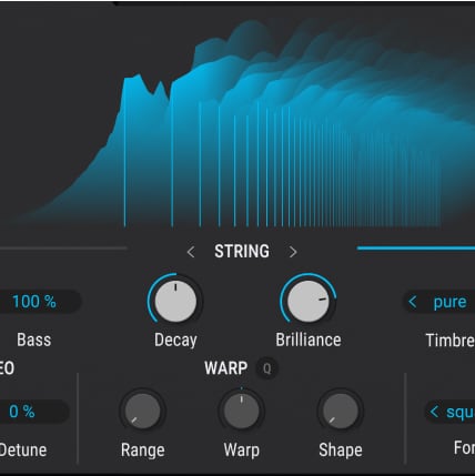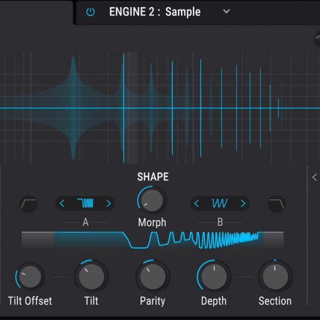 Entdecke alle Klangformungsmöglichkeiten mit sechs Synthese-Arten: Modal, Granular, Wavetable, Sample, Harmonic und virtuell-analog, sowie zusätzlich eine Utility-Engine.