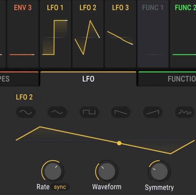Envelopes, Morphing LFOs, Function generators, Random generators, Combinators and more