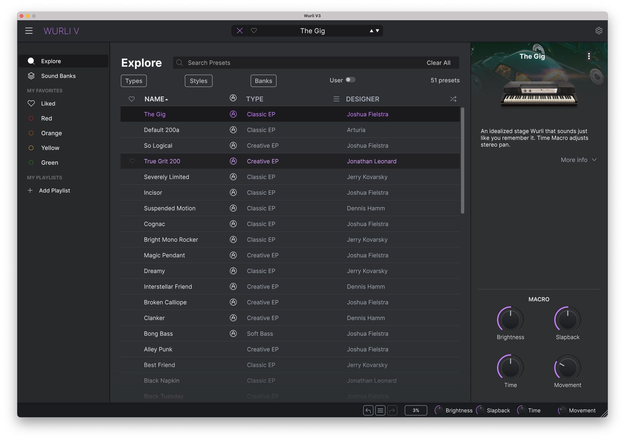 Wurli V covers a broad stylistic range with a sound that breathes character and soulful electric expressivity.