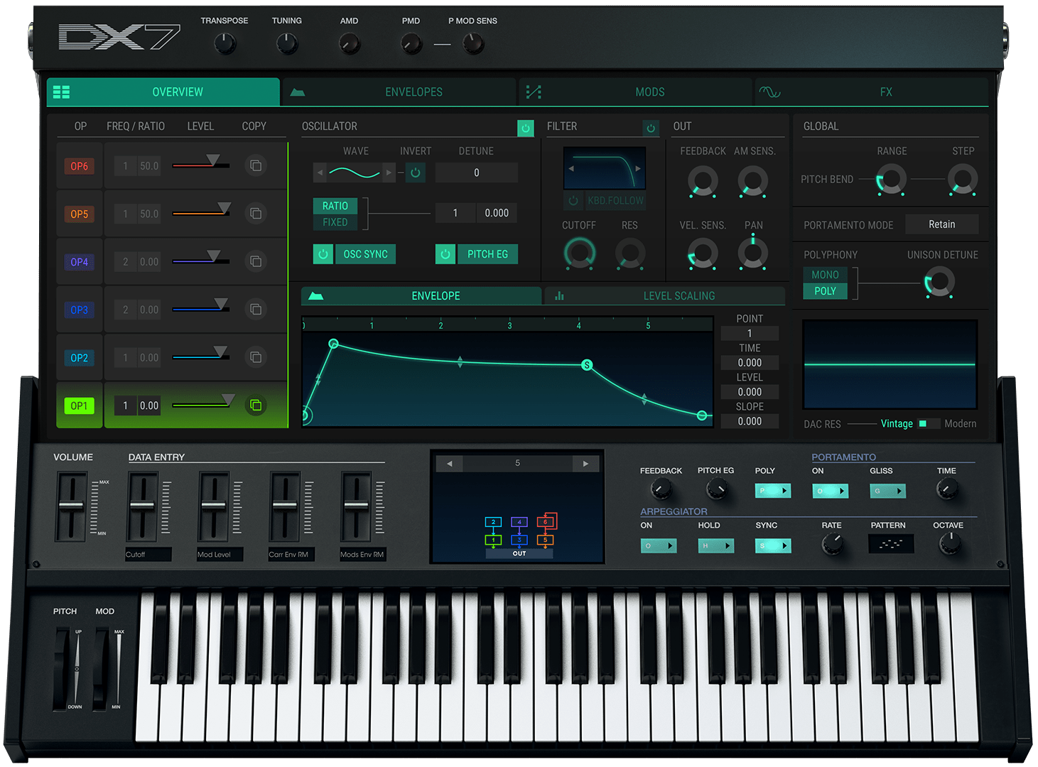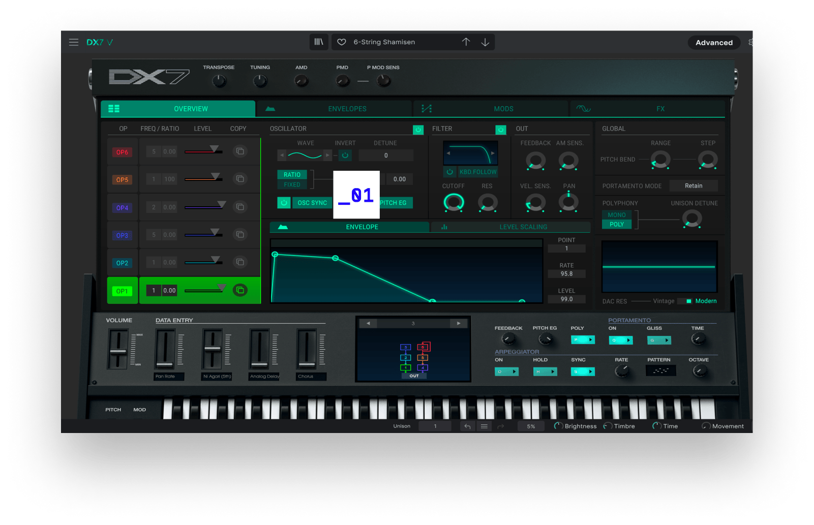 Vintage and Modern DAC Mode for a proper emulation of the DX7 converter