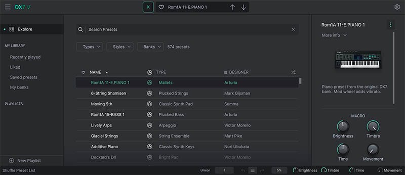 Having just one slider and a bunch of buttons made programming the original somewhat tedious. Electronic music pioneer Brian Eno even built a custom knob controller to get at every parameter of his DX7 at once. With DX7 V, there’s not only more of everything, but our interface also makes it easy and fun to control.
