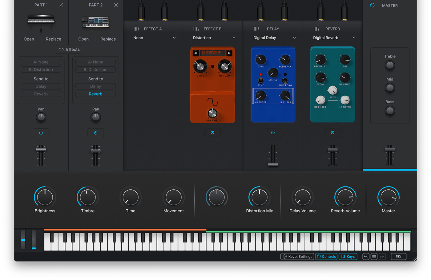 Part 2を押してサウンドを選択するだけで、今までなかった新しい音空間と、スプリットしての演奏の組み合わせを発見できるでしょう。
