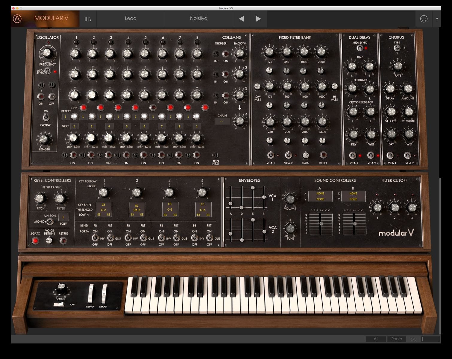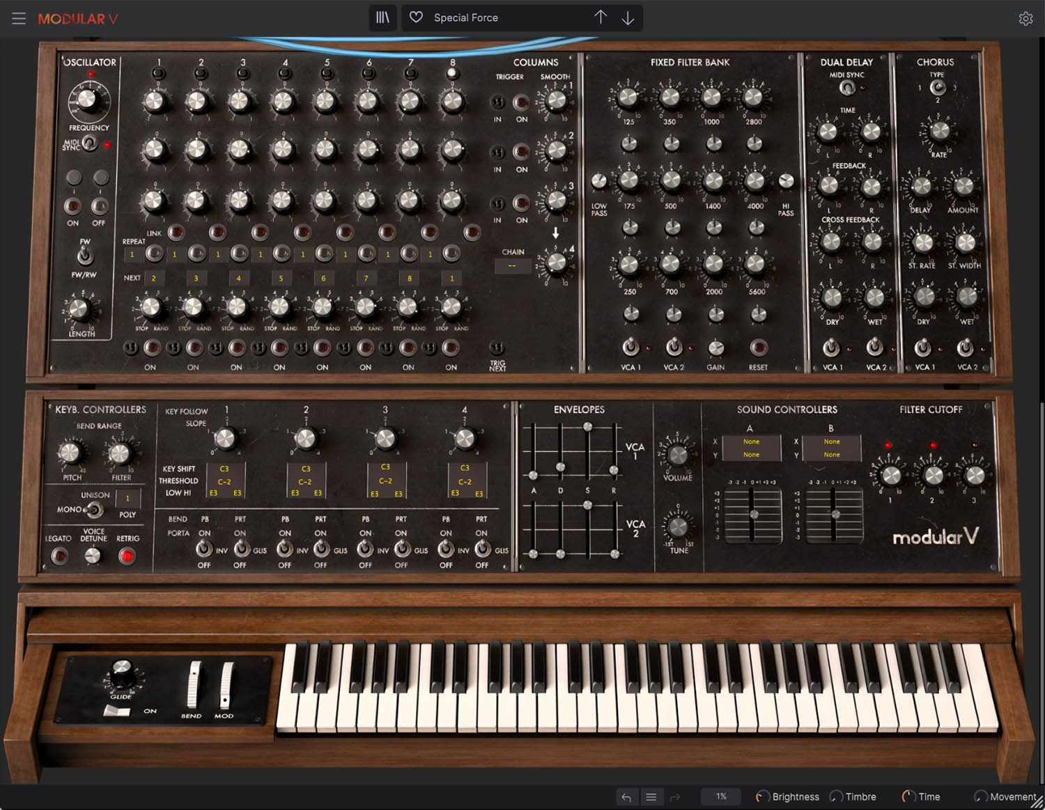 モジュラー・システムは複数のキャビネットにまたがることがよくありましたが、Modular Vでは、その部分も忠実に再現されています。オリジナルとなったモデルの中で、最も大きなサイズのバージョンをモデリングのベースにしているため、実機にとても忠実なレイアウトと、現代のユーザーが必要とするモダンな使いやすさを兼ね備えています。