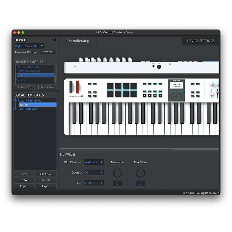 MIDI Control Center (MCC)は、デバイス設定やファームウェア・アップデート、デバイスのメモリーやローカル・テンプレート、MIDIコンソールなど、お使いのコントローラーのさまざまな機能の設定や管理を行うためのソフトウェアです。