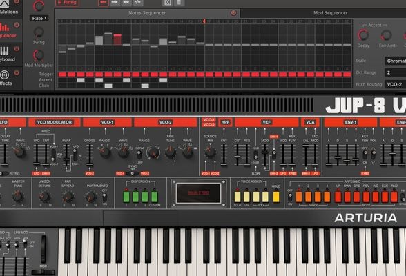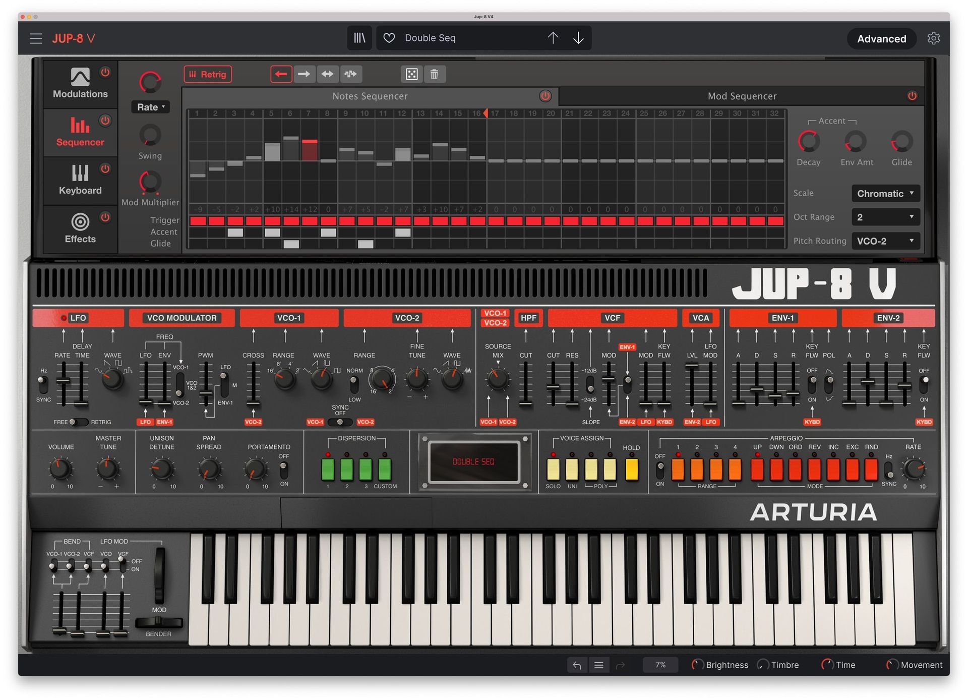 Jup-8 V comes armed with 2 x 32-step sequencers for Notes and Modulation respectively. Better still, both of these sequencers have been enhanced in parallel, with simplified sync options, independent sequence lengths, intuitive pitch values, scales, and more - simply giving you greater control when constructing musical ideas.