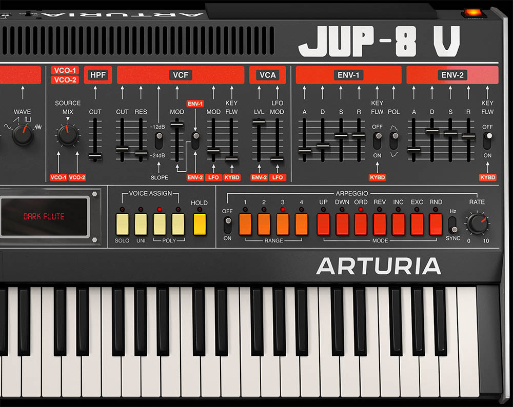 Jup-8 V channels the unmistakably awe-inspiring polysynth power of the iconic Jupiter-8.