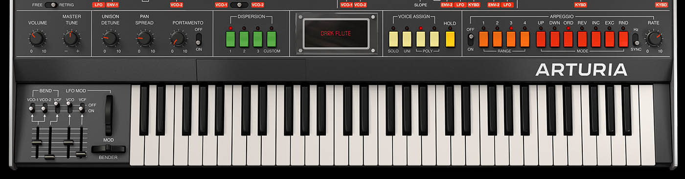 All manufacturer and product names mentioned on this page are trademarks of their respective owners, which are in no way associated or affiliated with Arturia. The trademarks of other manufacturers are used solely to identify the products of those manufacturers whose features and sound were studied during the development. All names of equipment, inventors, and manufacturers have been included for illustrative and educational purposes only, and do not suggest any affiliation or endorsement by any equipment inventor or manufacturer.