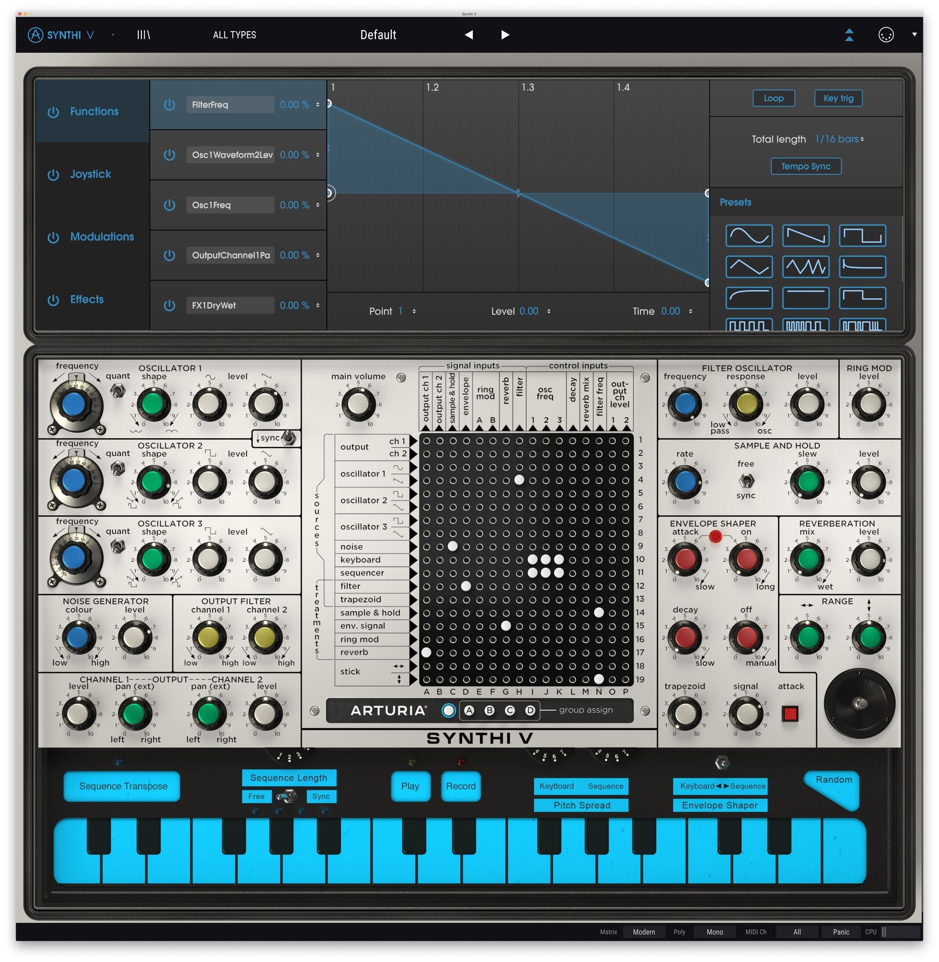 Functions can behave like an LFO, a complex multi-segment envelope, or anything in between. Route up to five of them to any parameter in Synthi V.