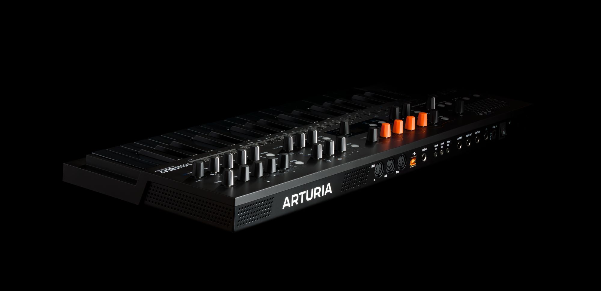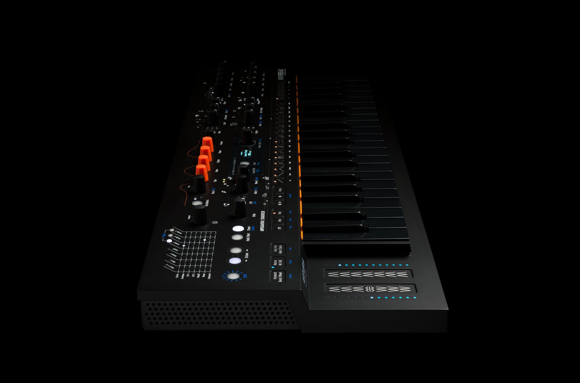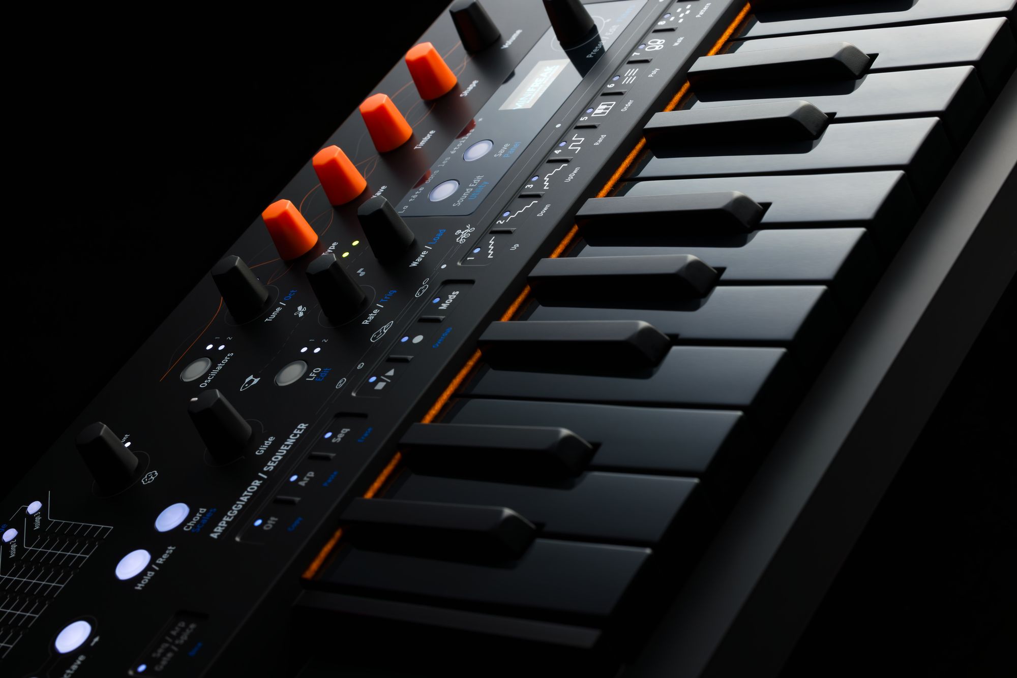 Discover a synth with a striking all-black exterior, decorated with stylish and characterful graphics that reflect the controls.