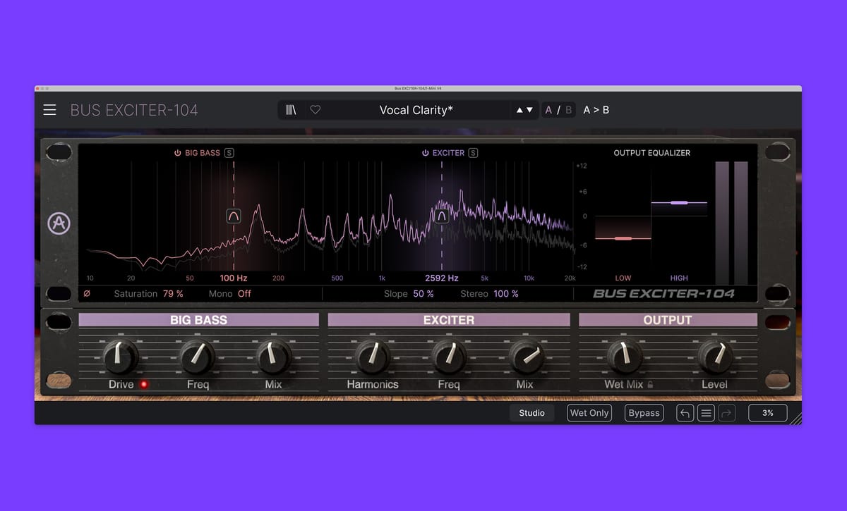 Whether tweaking a home studio project or mixing a major label release, the Bus EXCITER-104 is your secret weapon for impressive, polished sound.