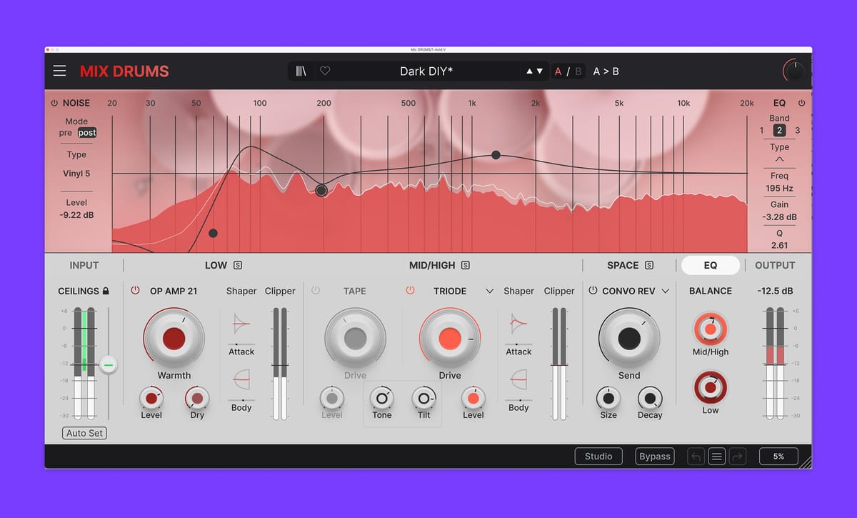 Take flat or weak drum recordings to the next level. Mix DRUMS adds punch, body, and presence fast - without endless routing or tweaking.
