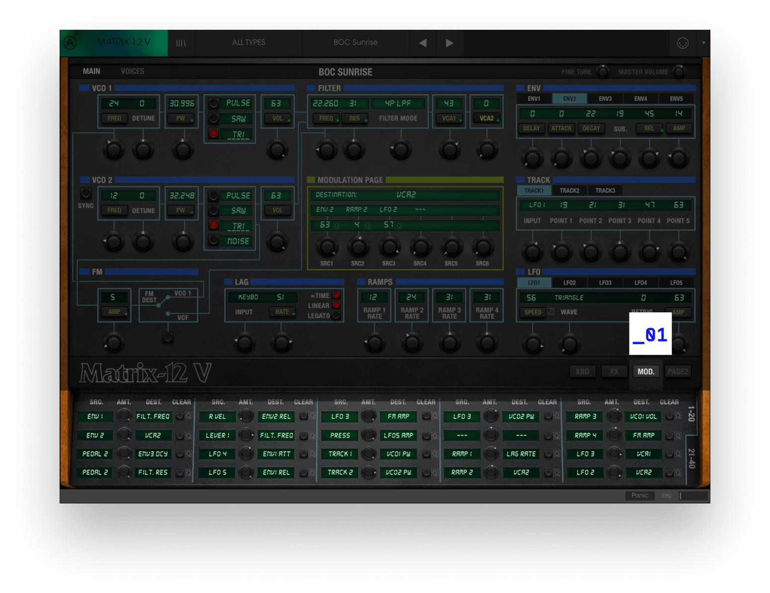 Ultra-powerful modulation matrix with 27 sources and 47 destinations.