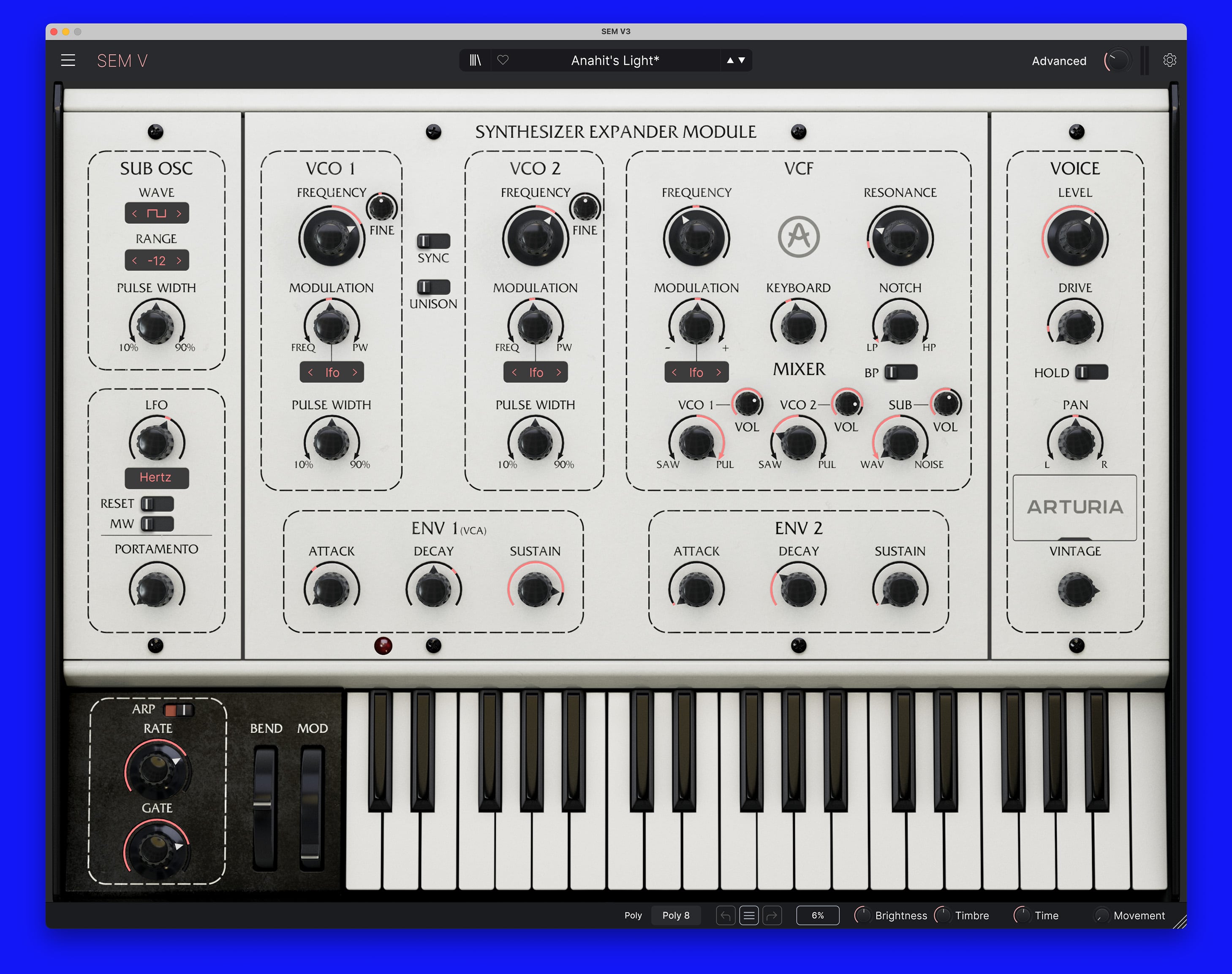 Recreated in exceptional detail, SEM V embodies the untamed 70’s attitude that made the original a classic. Complete with its iconic state-variable filter and enhanced with modern capabilities - wield the power of bold, evolving analog sounds.