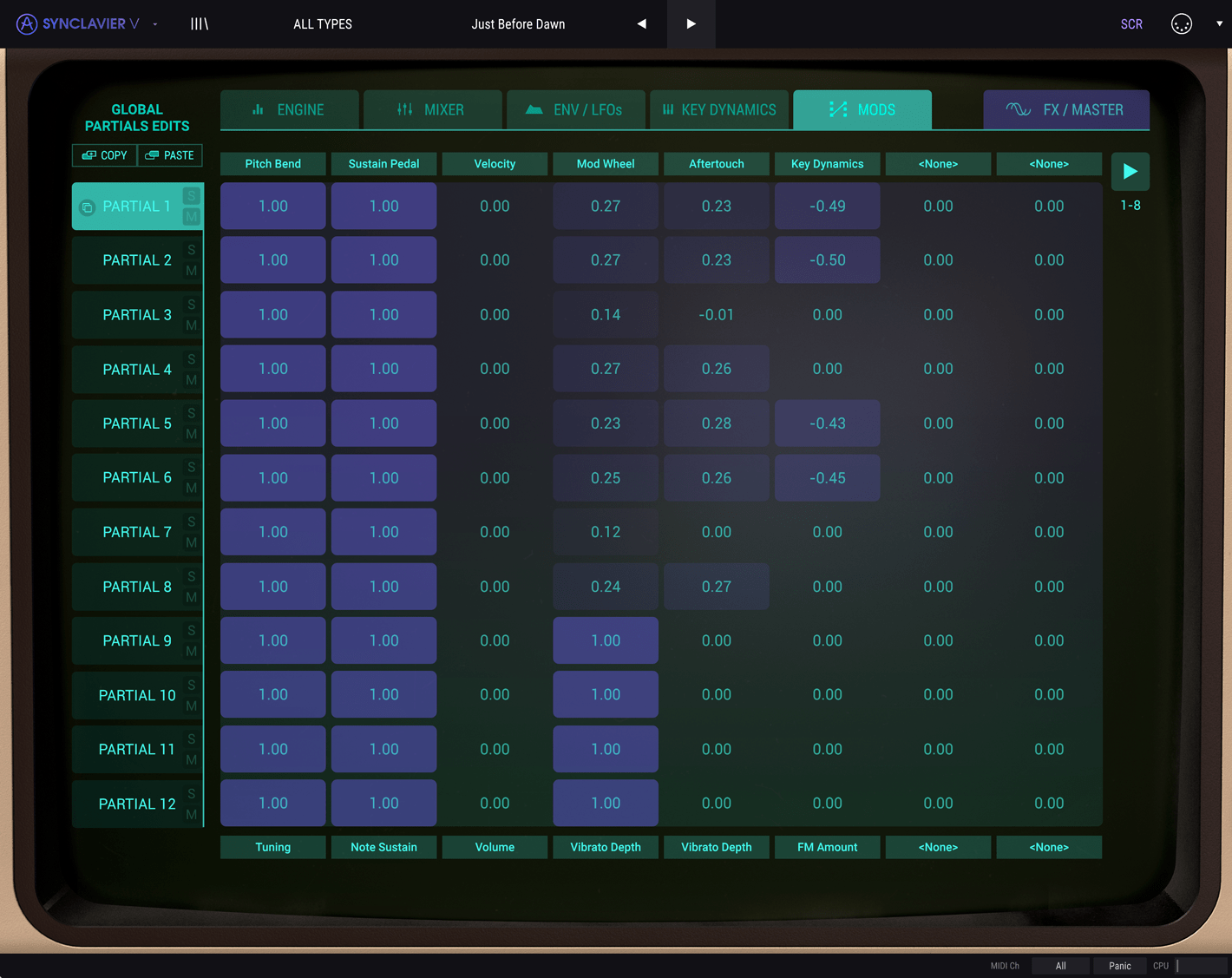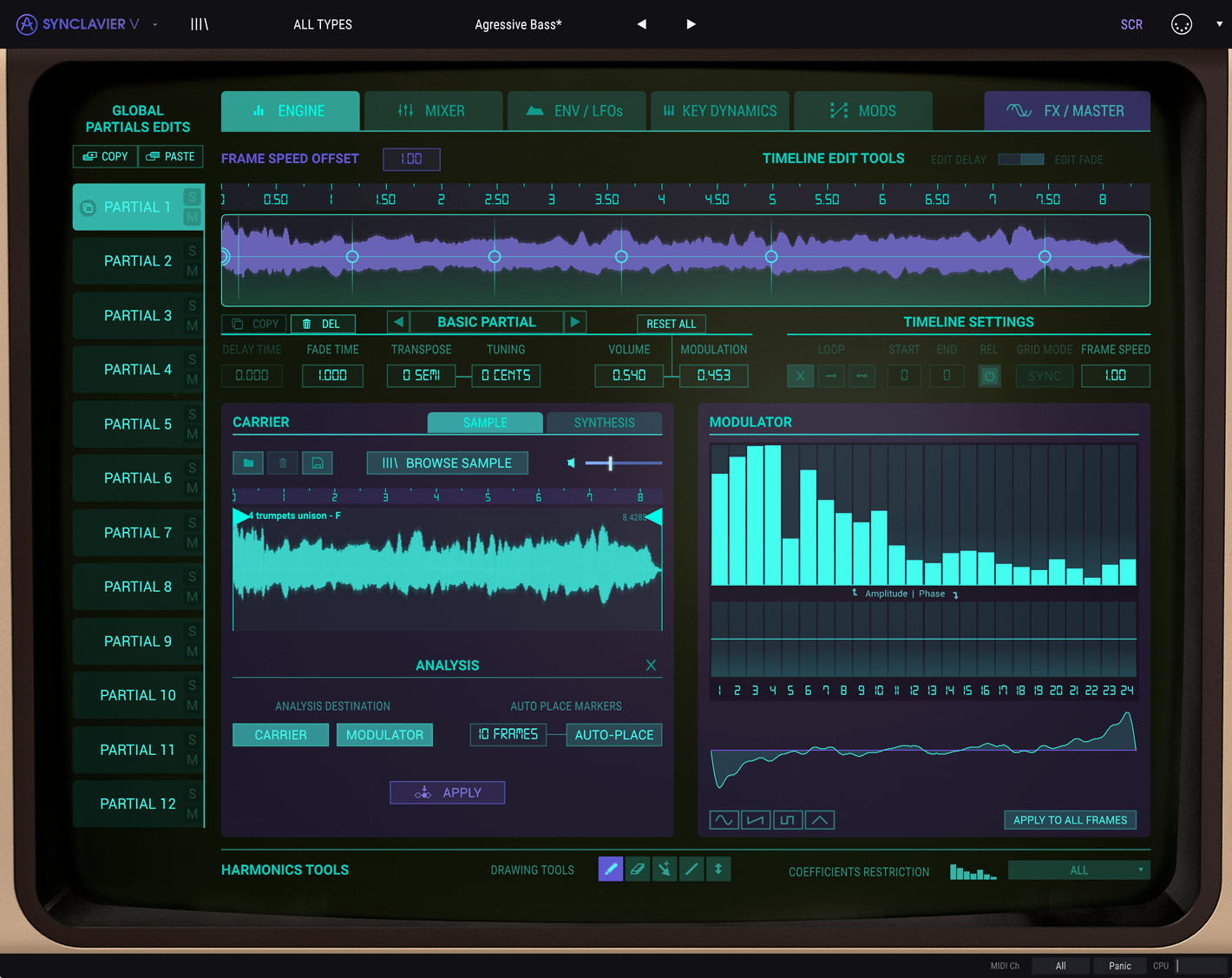 A single Preset can have up to 12 Partials. Each is a complete additive and FM synthesis chain.