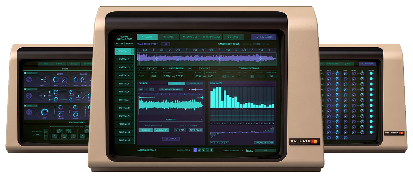 All manufacturer and product names mentioned on this page are trademarks of their respective owners, which are in no way associated or affiliated with Arturia. The trademarks of other manufacturers are used solely to identify the products of those manufacturers whose features and sound were studied during the development. All names of equipment, inventors, and manufacturers have been included for illustrative and educational purposes only, and do not suggest any affiliation or endorsement by any equipment inventor or manufacturer.