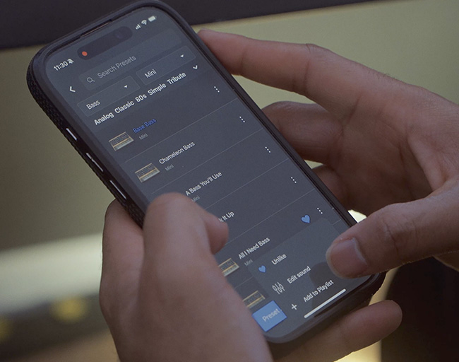 Between flights, call times, and everything in-between, Khirye can keep hunting for the next sound without needing to sit down at a full rig. With AstroLab Connect on his phone, he auditions patches in real time, triggers them on the instrument, saves favorites, makes quick effect tweaks, and drops them straight into a playlist. By the time he’s back in a rehearsal room or stepping onto a stage, the sounds are already organized in order, ready to move song to song without breaking momentum.