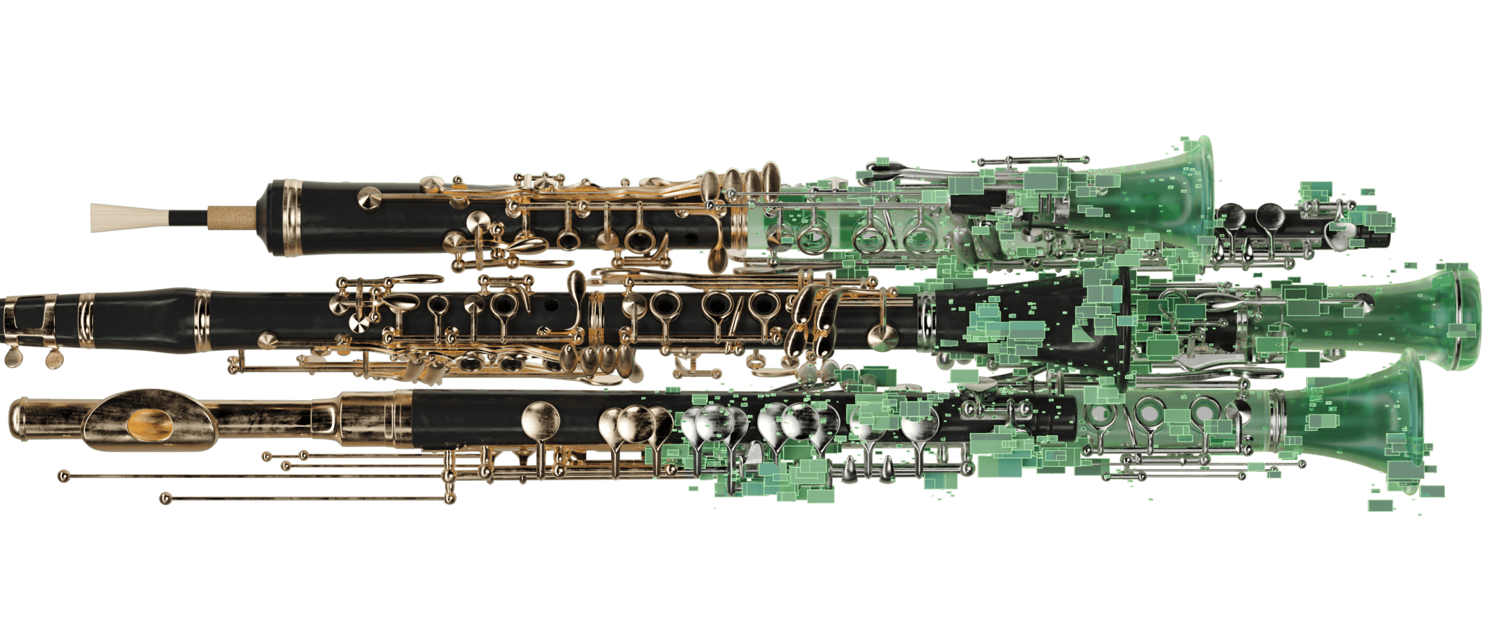 Woodwinds but not as you know them - morph elemental solo Clarinet, Bassoon, English Horn and Flute, as well as ensemble recordings with 11 players.