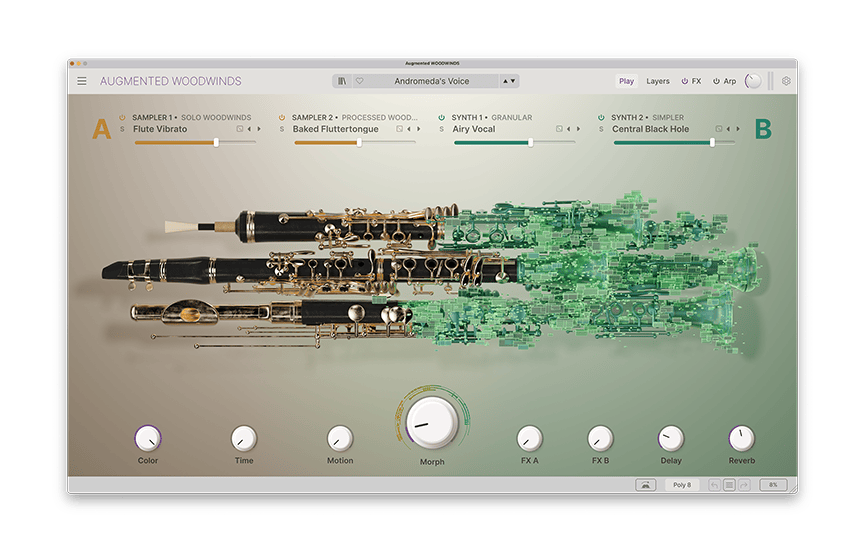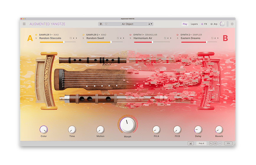 Hybrid fusion of sampling and synthesis, propelling traditional strings, voices, woodwinds, brass, mallets and traditional Chinese instruments into entirely new sonic frontiers.